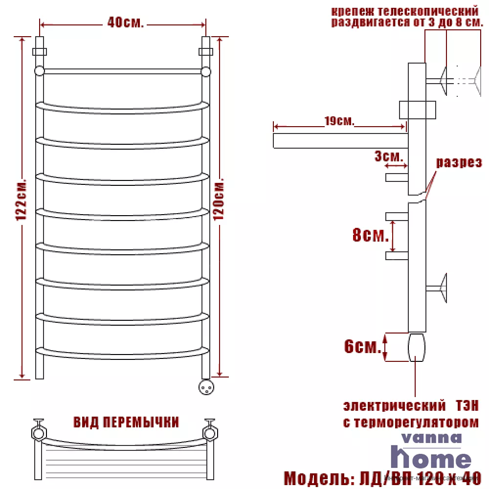 | Направление подключения электрического полотенцесушителя | Правое |