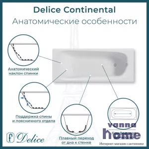 Ванна чугунная Delice Continental 120x70 с отверстиями для ручек