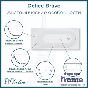 Ванна из литьевого мрамора Delice Bravo 150x70 глянцевая