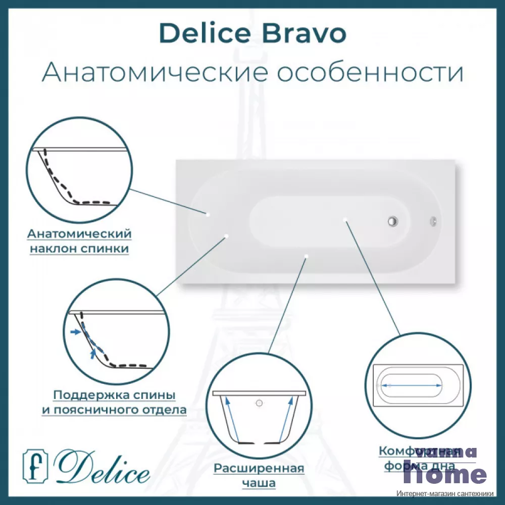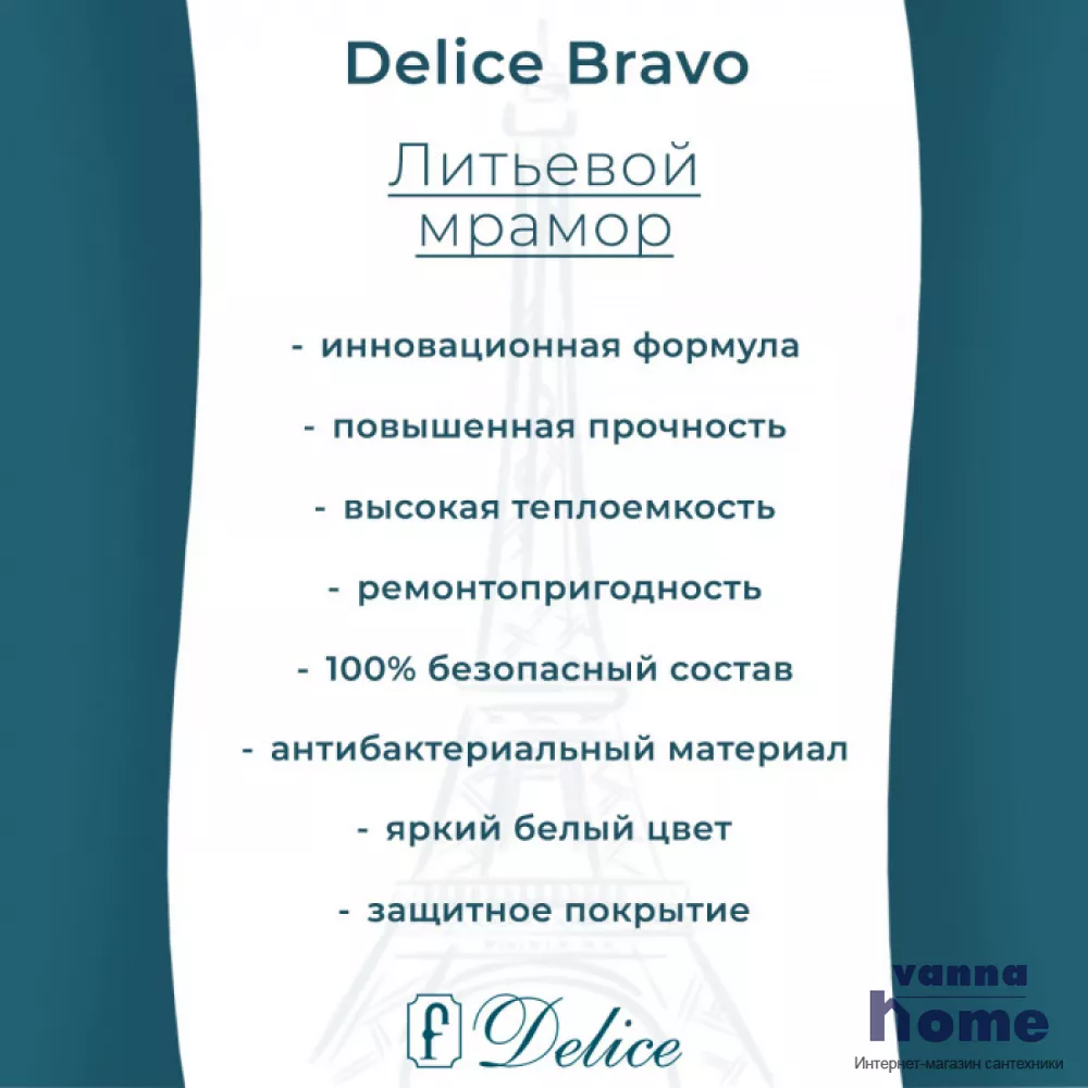 Бренд Delice сочетает европейские стандарты производства с передовыми материалами. Каждая ванна проходит многоступенчатый контроль качества, что подтверждает её надёжность и соответствие заявленным характеристикам.