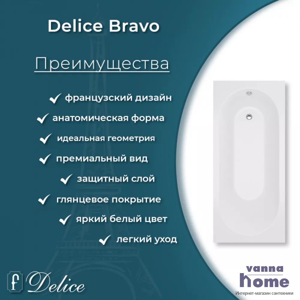 Выберите ванну Delice Bravo DLR330036‑M — и вы получите не просто сантехнический прибор, а элемент интерьера, который подарит вам: