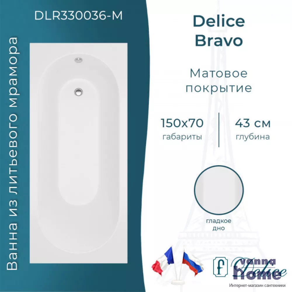 Преобразите ванную комнату с помощью ванны Delice Bravo в матовом исполнении — гармоничного союза инновационных технологий, продуманного дизайна и безупречного качества. Модель DLR330036‑M с габаритами 150×70 см станет выразительным акцентом интерьера, превращая ежедневные водные процедуры в подлинный ритуал релакса.