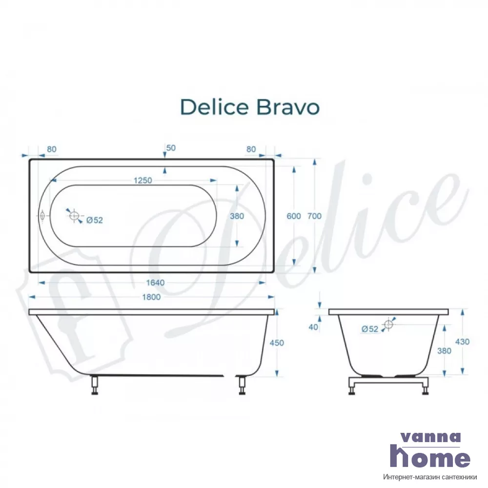 Ванна из литьевого мрамора Delice Bravo 180x70 матовая