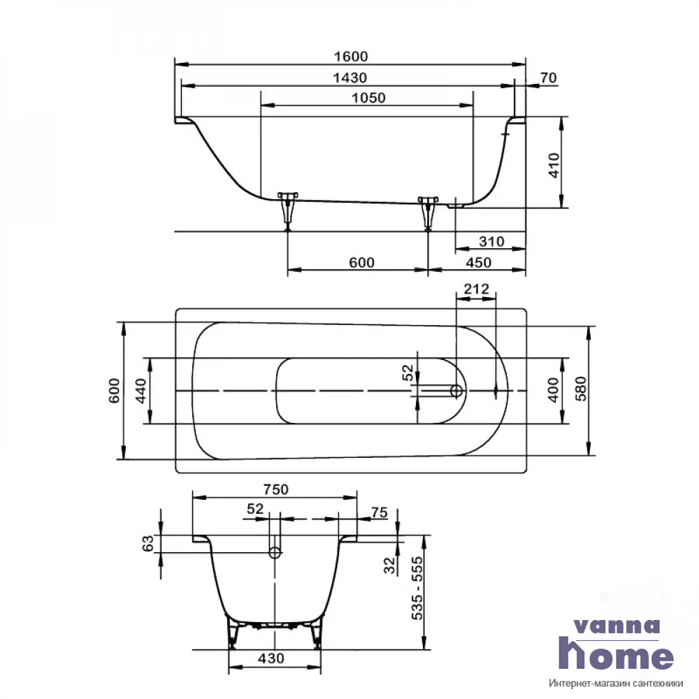 Стальная ванна Kaldewei Saniform Plus 372-1 160x75, 112500010001