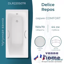 Ванна чугунная Delice Repos 150x70 с антискользящим покрытием