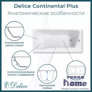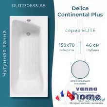 Ванна чугунная Delice Continental Plus 150x70 с антискользящим покрытием