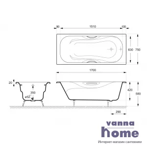 Чугунная ванна Goldman Comfort 170x70 (углубленная 46 см)