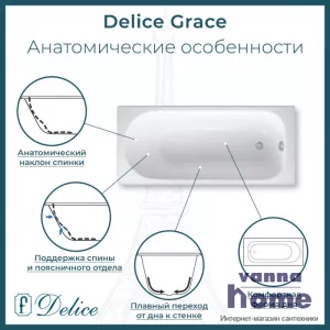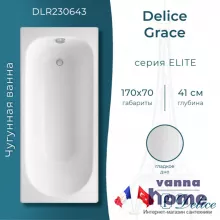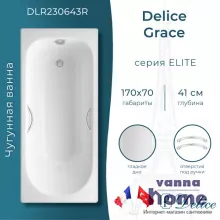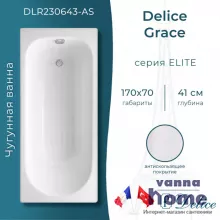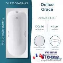 Ванна чугунная Delice Grace 170x70 с антискользящим покрытием