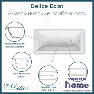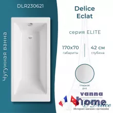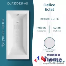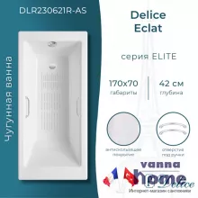 Ванна чугунная Delice Eclat 170x70 с антискользящим покрытием