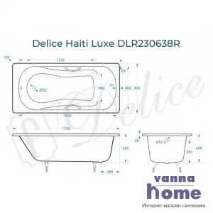 Ванна чугунная Delice Haiti Luxe 170x80 с отверстиями для ручек