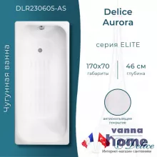 Ванна чугунная Delice Aurora 170x70 с антискользящим покрытием