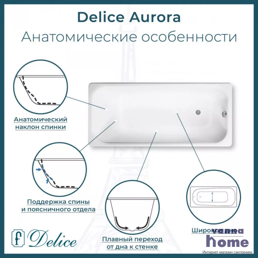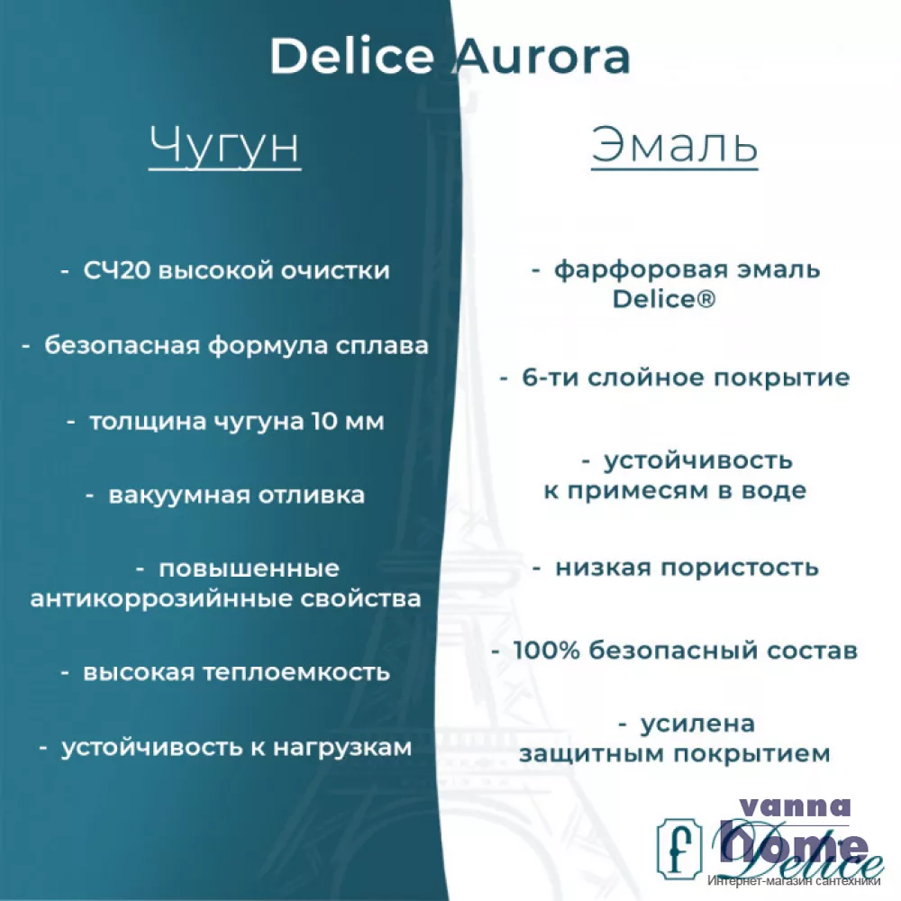 Ванна чугунная Delice Aurora 170x70