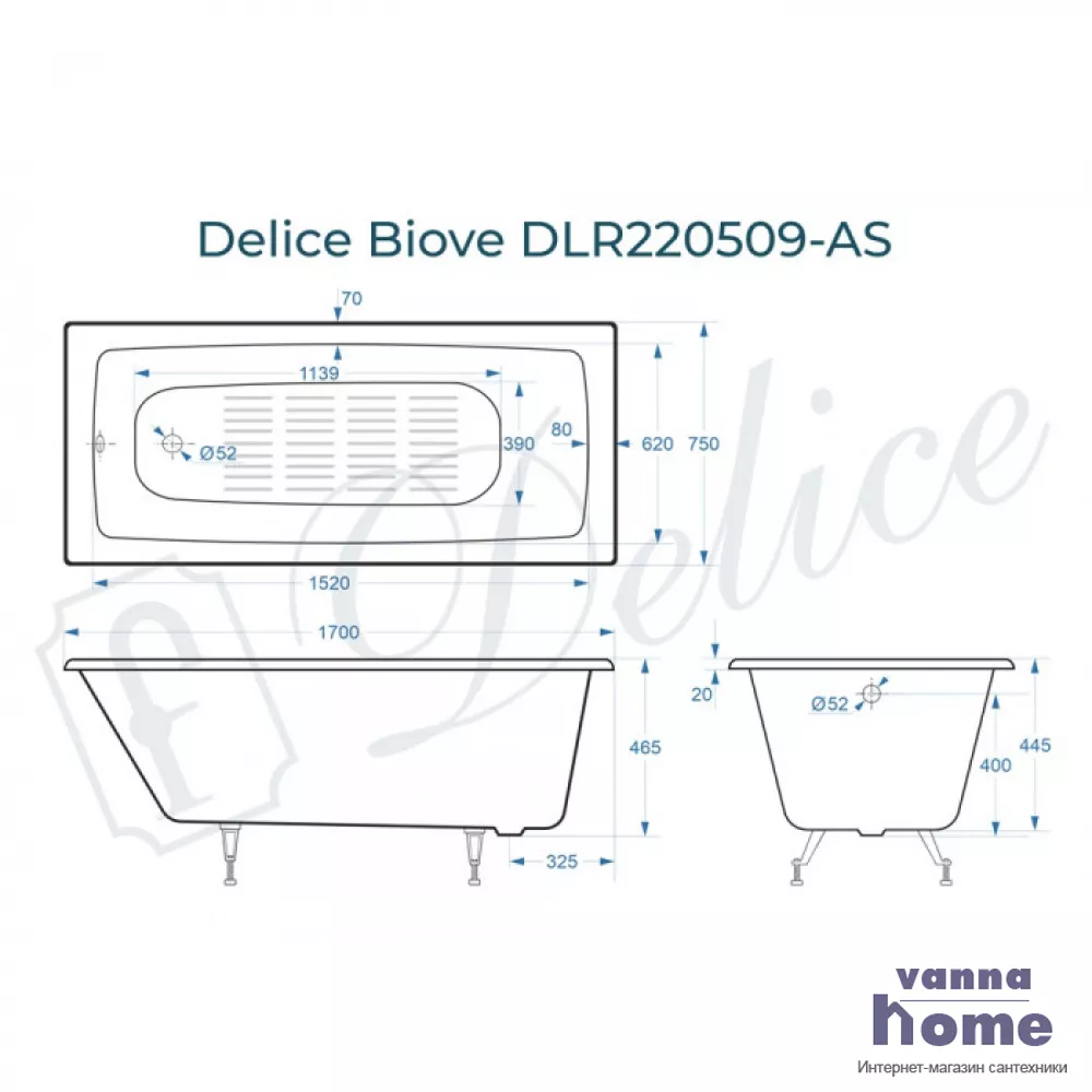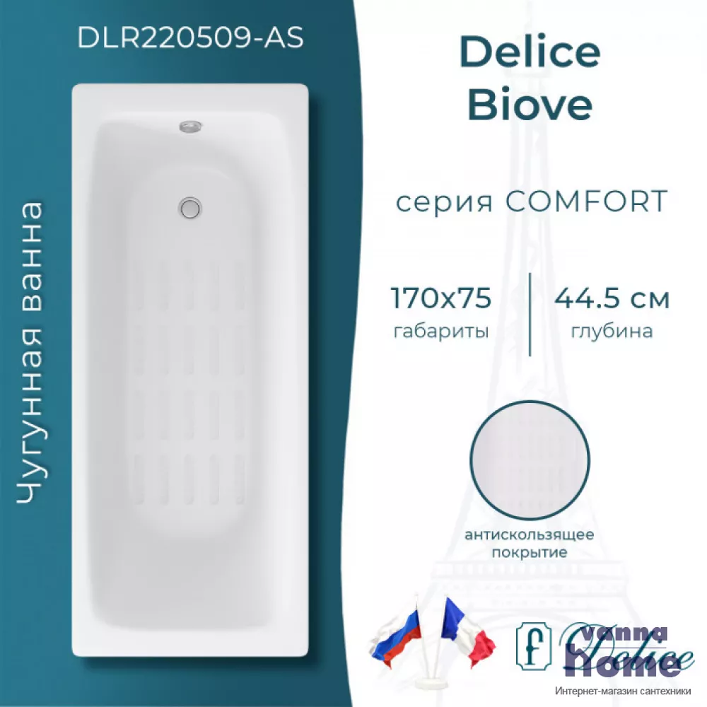 Ванна чугунная Delice Biove 170x75 с антискользящим покрытием