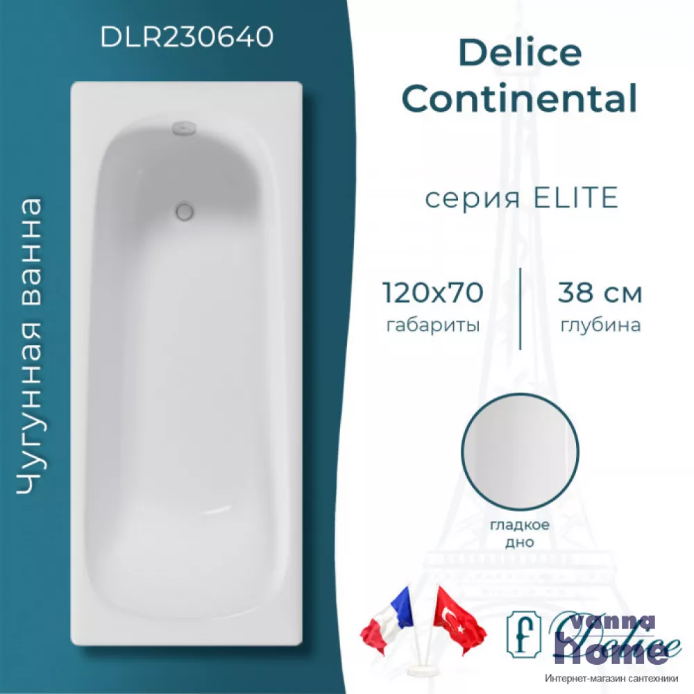Ванна чугунная Delice Continental 120x70