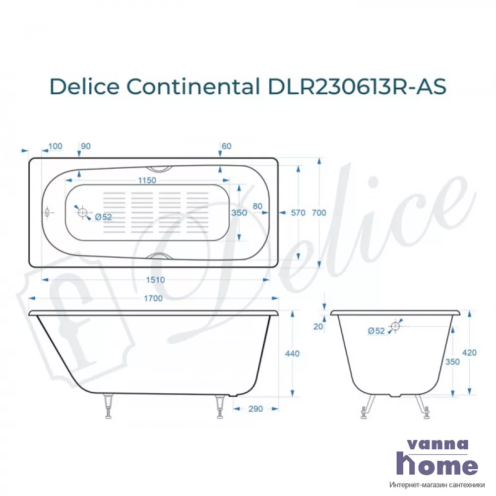 Чугунная ванна Delice Continental 170x70 в максимальной комплектации — с заводской перфорацией под ручки и интегрированным антискользящим покрытием — это флагманское решение в своей размерной линейке от бренда Delice (Франция). Модель спроектирована для стандартных санузлов, где требуется объединить монументальную надежность чугуна с многоуровневой системой защиты для всех членов семьи.