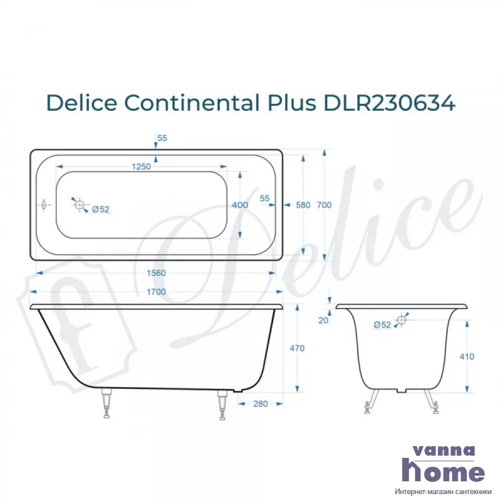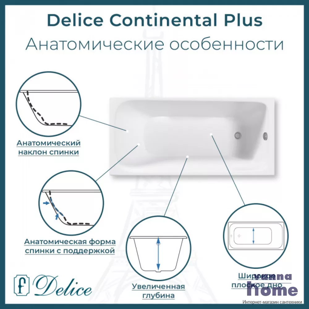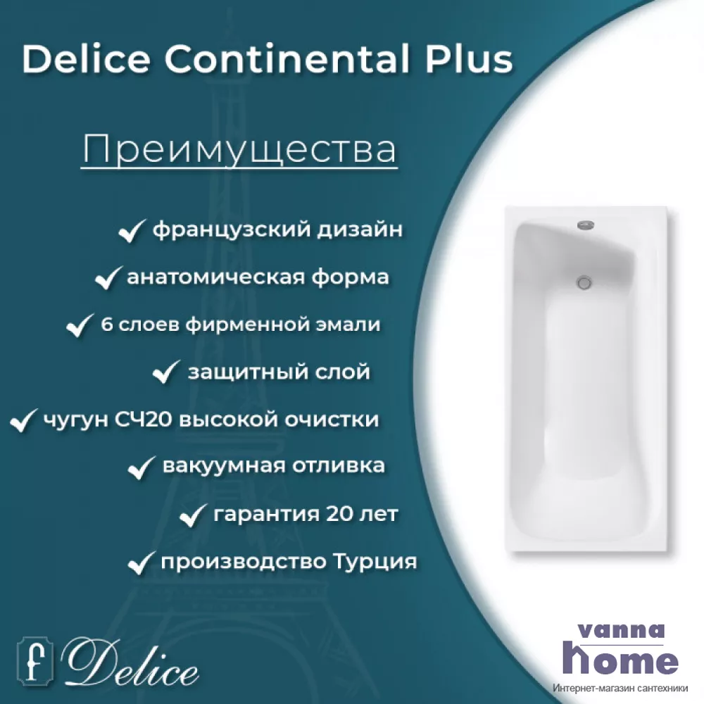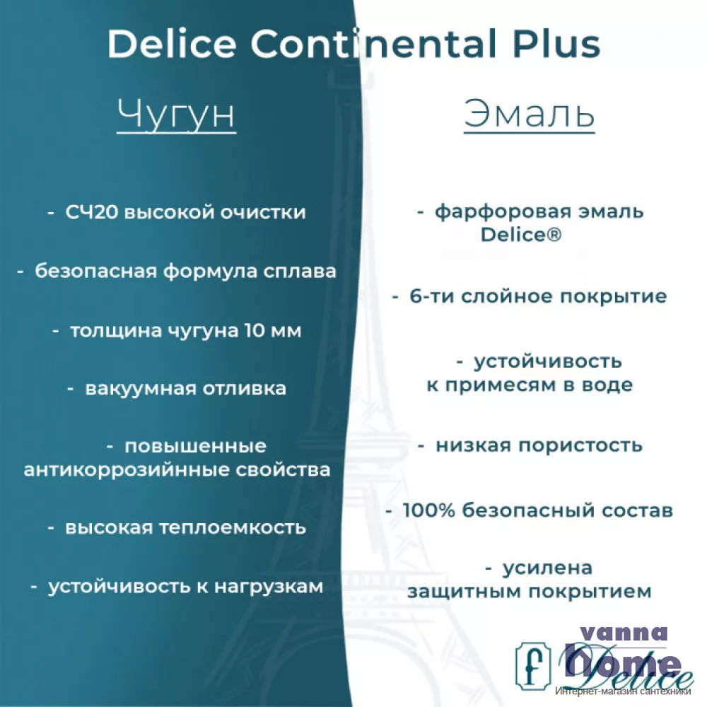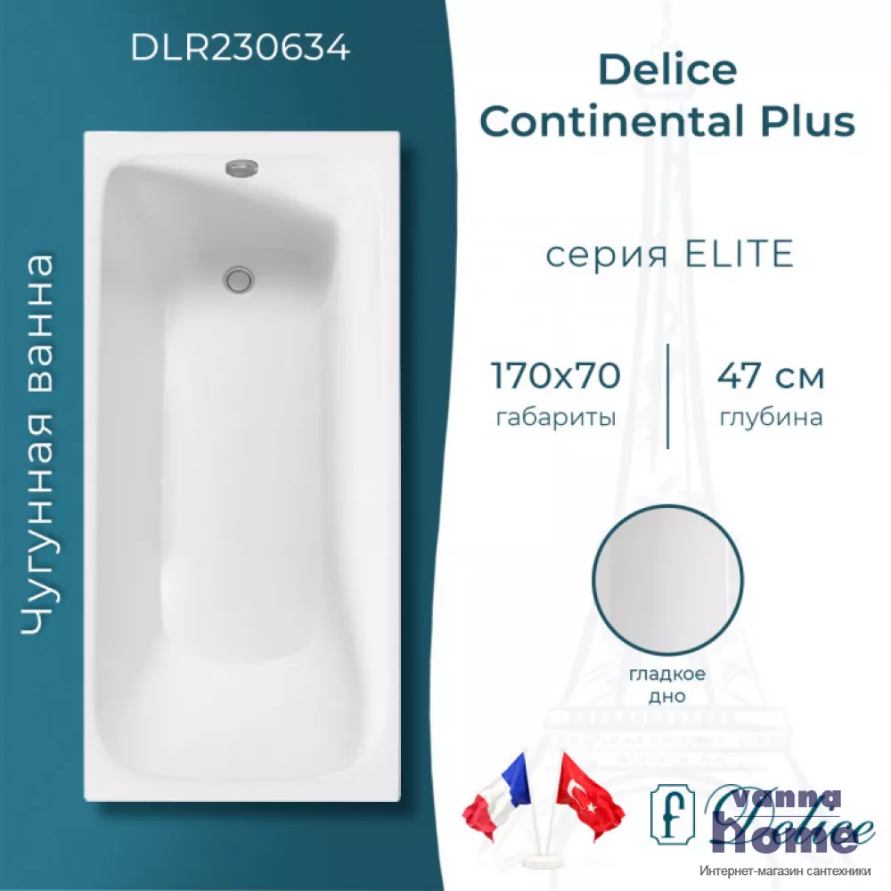 Ванна чугунная Delice Continental Plus 170x70