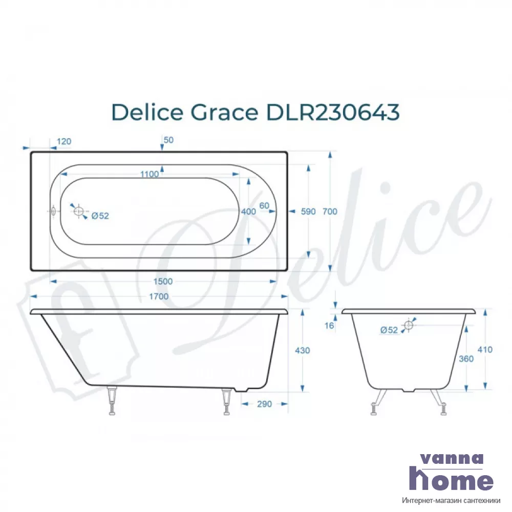 Ванна чугунная Delice Grace 170x70