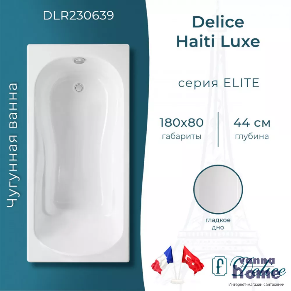 Ванна чугунная Delice Haiti Luxe 180x80