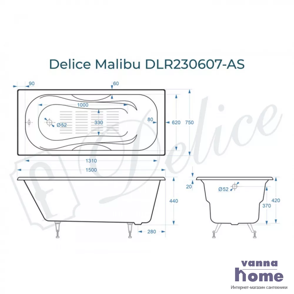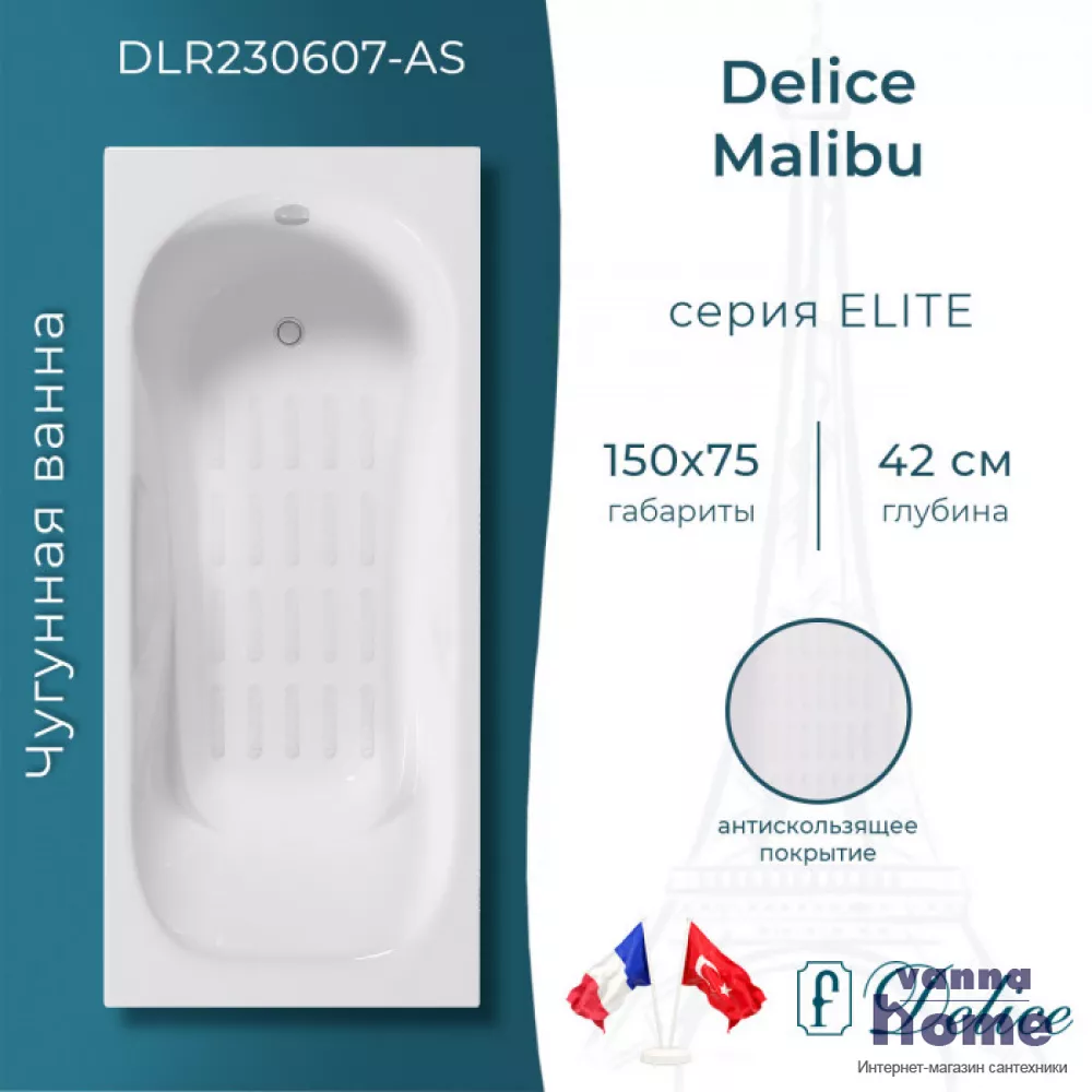 Ванна чугунная Delice Malibu 150x75 с антискользящим покрытием
