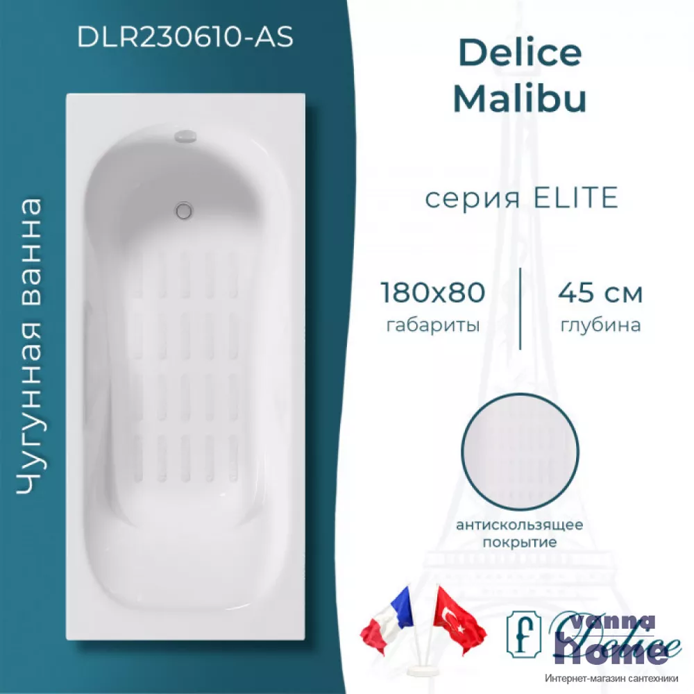 Ванна чугунная Delice Malibu 180x80 с антискользящим покрытием