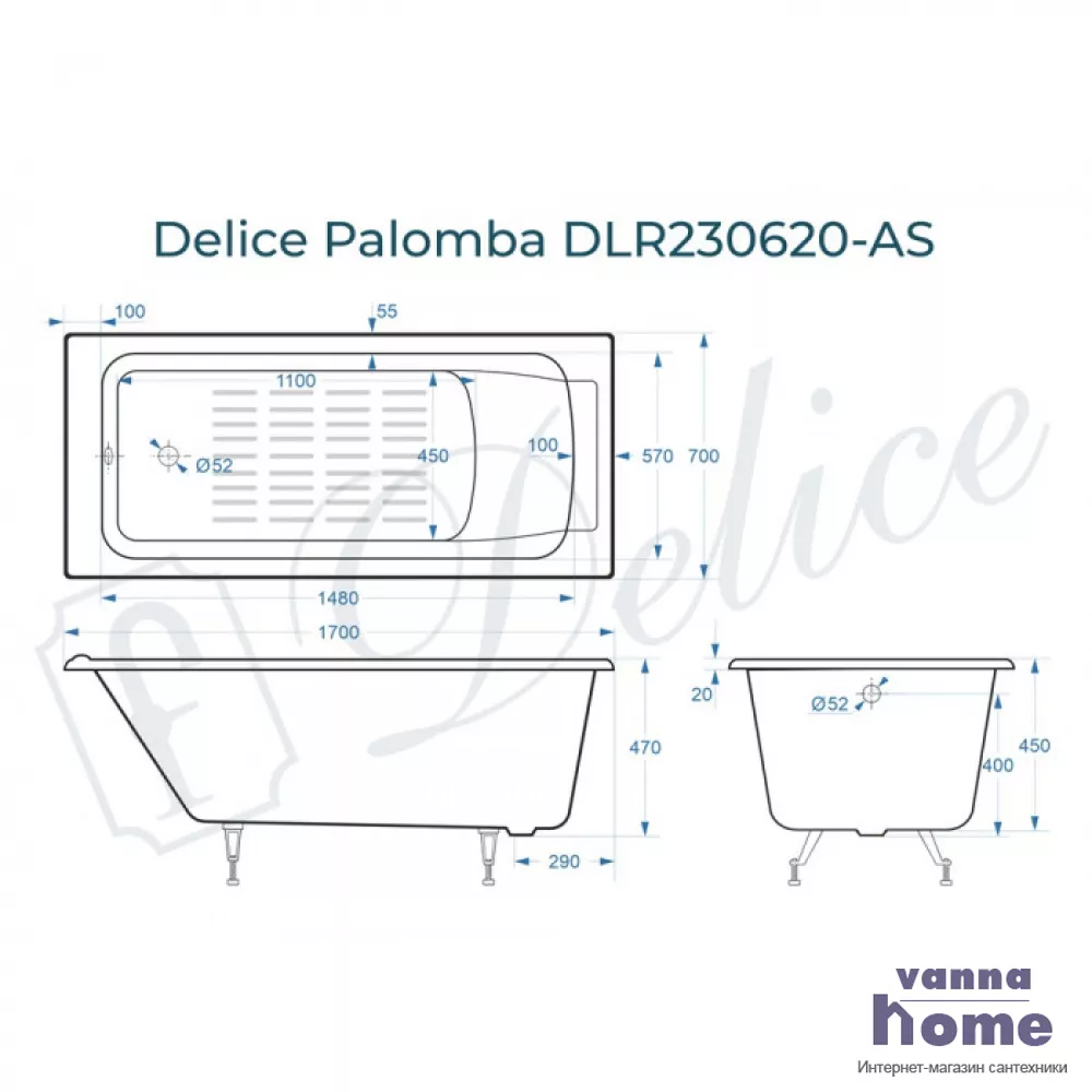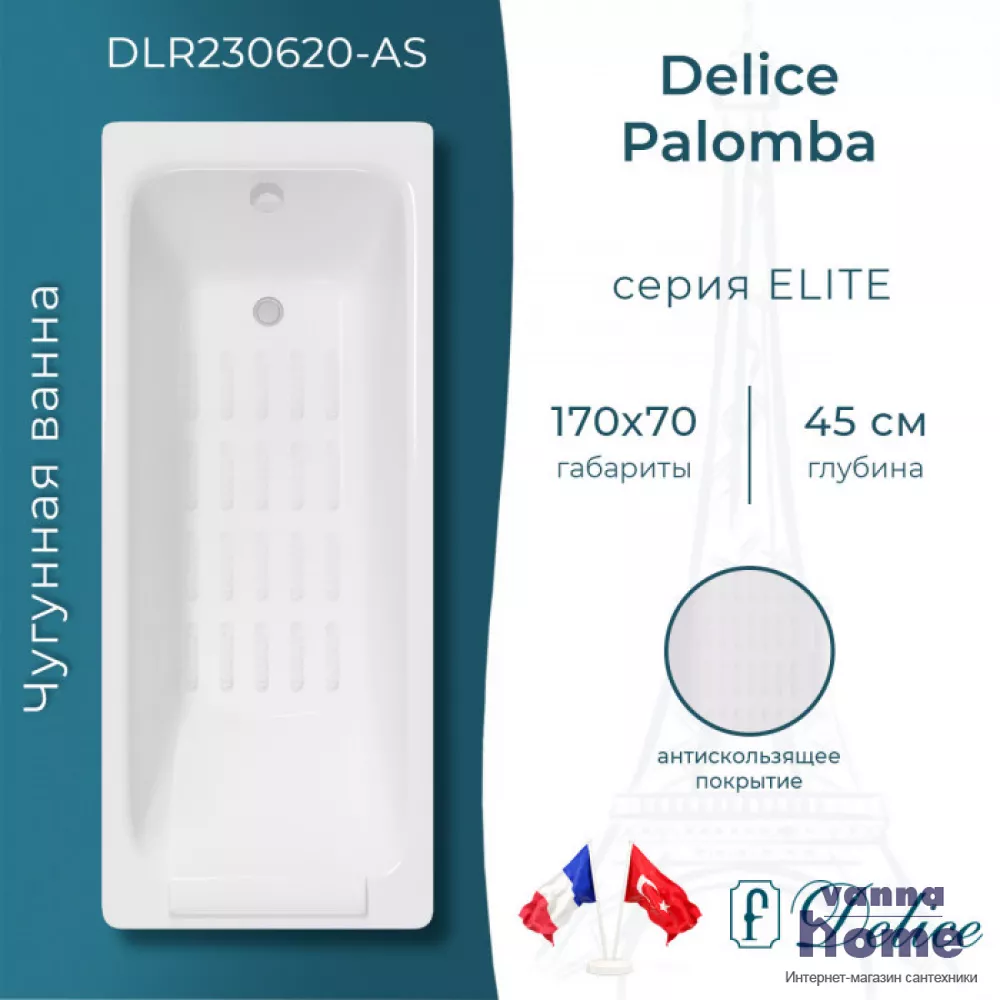 Ванна чугунная Delice Palomba 170x70 с антискользящим покрытием