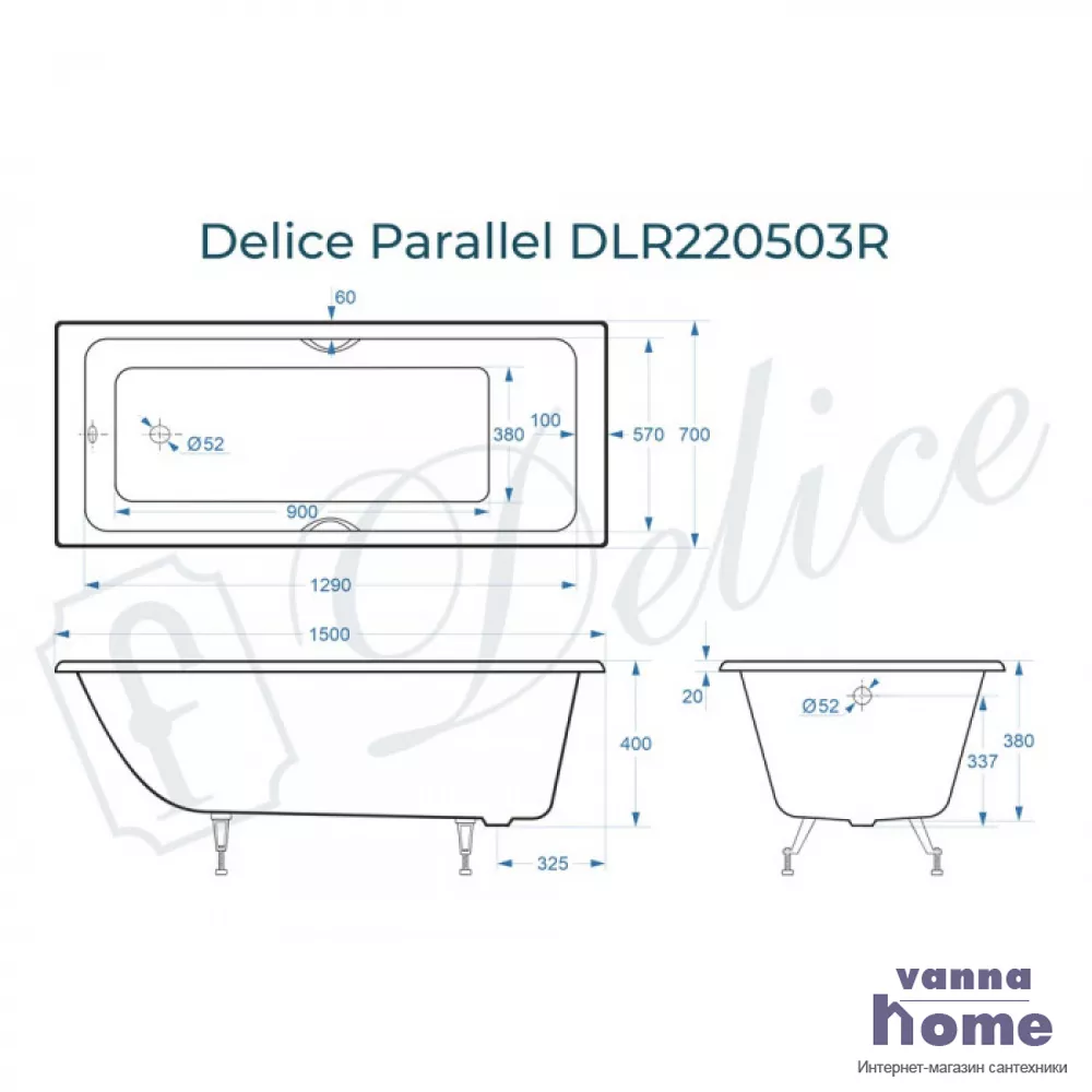 Ванна чугунная Delice Parallel 150x70 с ручками