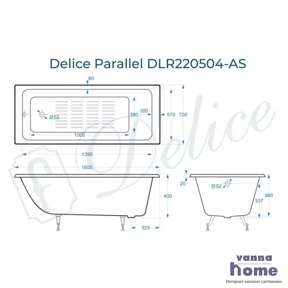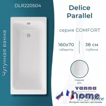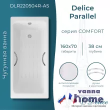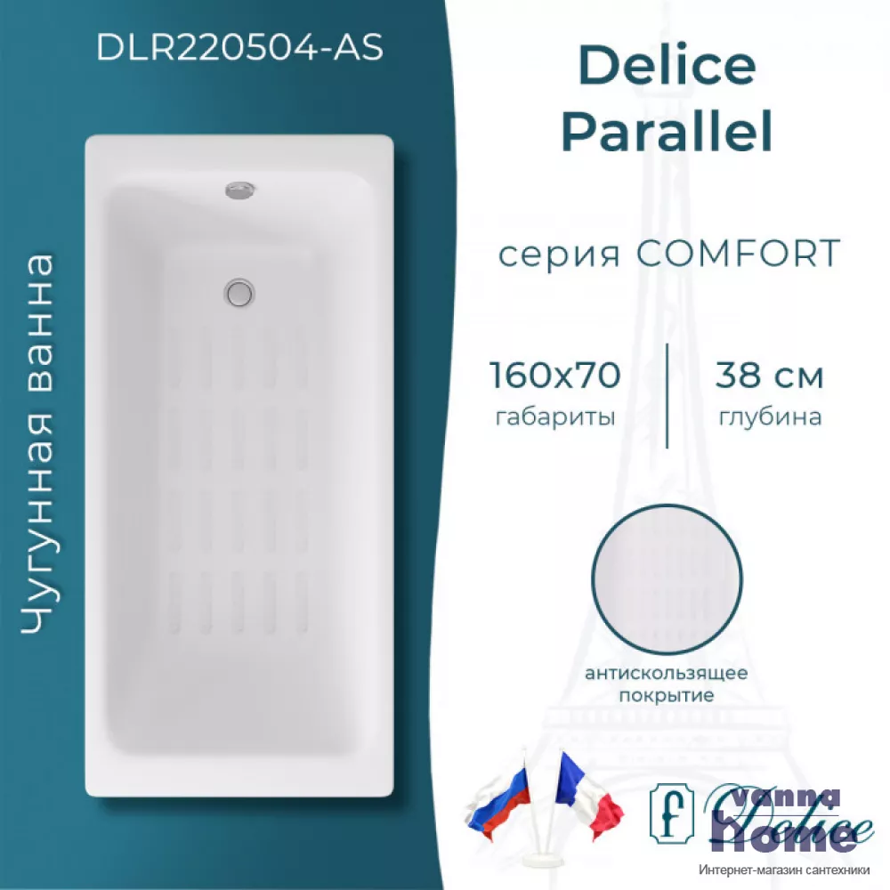 Ванна чугунная Delice Parallel 160x70 с антискользящим покрытием