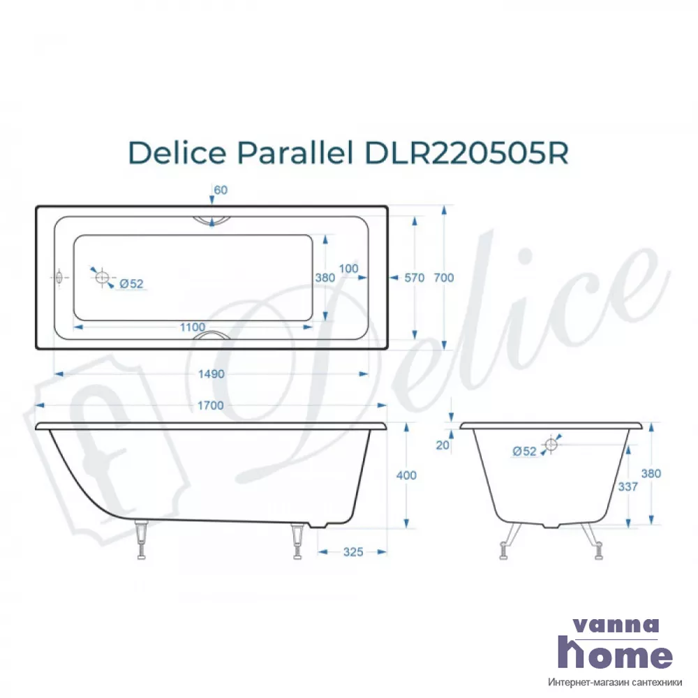 Ванна чугунная Delice Parallel 170x70 с ручками