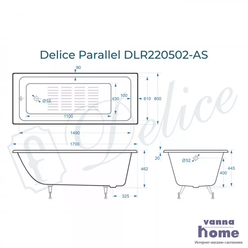 Ванна чугунная Delice Parallel 170x80 с антискользящим покрытием