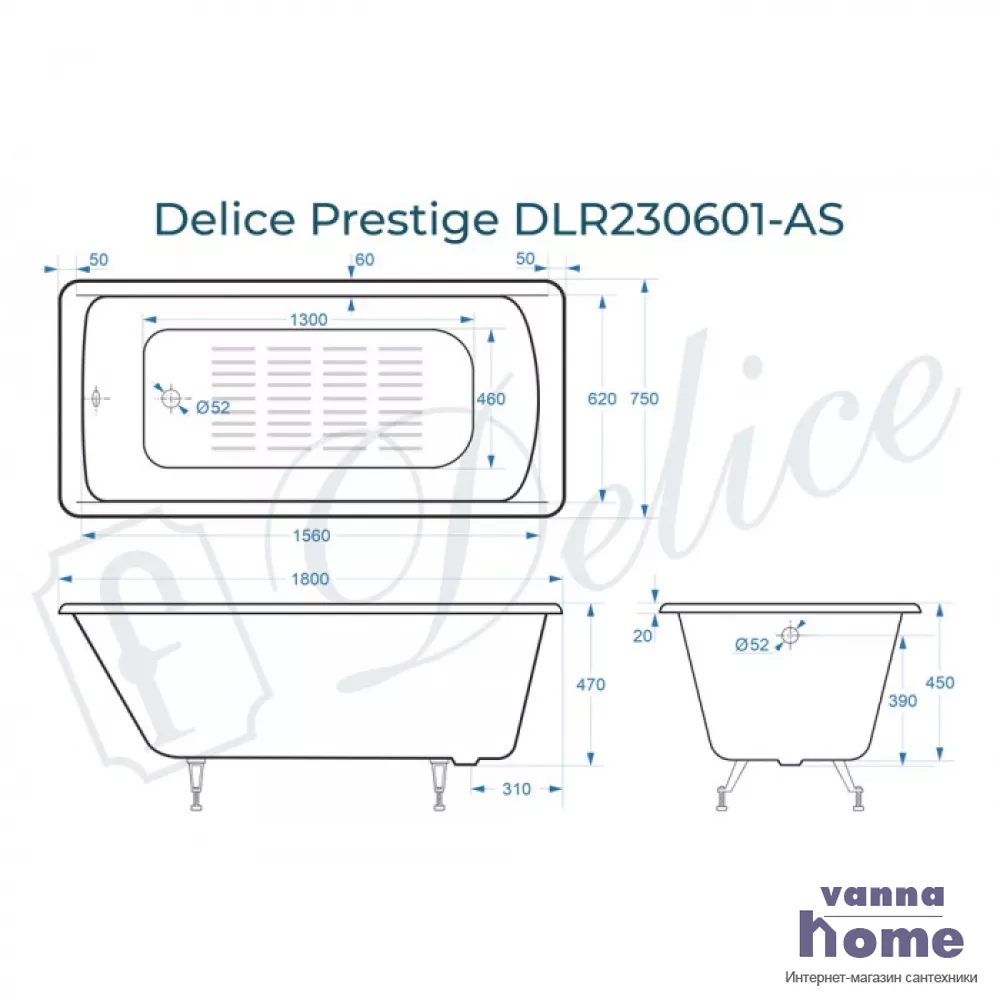 Ванна чугунная Delice Prestige 180x75 с антискользящим покрытием