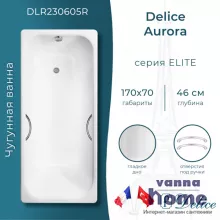 Чугунная ванна Якоб Делафон Параллель 170х70 с отверстиями для ручек